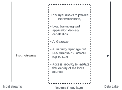 In the case of data being ingested by input streams (for example, monitoring cameras or smart devices), each device is authenticated (i.e., the machine identity) prior to data being delivered to the data lake for the LLM engine to start its work. Also, the access solution would continue to monitor and get feeds from third party systems to block any malicious machine.