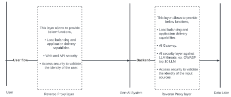 In this phase, we must apply the access rules to the data returned to the user by the Gen-AI engine. So, it would be appropriate to apply Single Sign-On and MFA technologies to the access solution. This access solution would then be able to fetch the identity store attributes and enforce the rules to the passing traffic.
