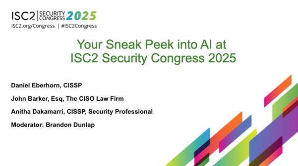Join us for a Sneak Peek Webinar, available now to watch on-demand, for an exclusive look into the AI-focused sessions taking place at this year's ISC2 Security Congress. Featuring three expert speakers on agentic AI, application security and AI–driven hacking and defense, you’ll walk away with fresh insights from experts at the forefront of cybersecurity and artificial intelligence and earn one free CPE credit!