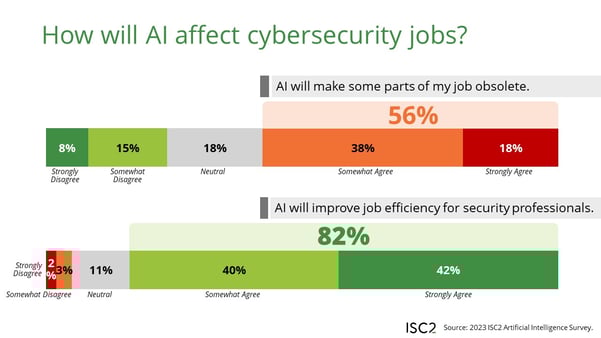 AI in Cyber 2024: Is the Cybersecurity Profession Ready?, a survey of ISC2 members revealed that 88% are already seeing AI impact their existing roles, with most seeing positives in the form of improved efficiency despite concerns over redundancy of human tasks.