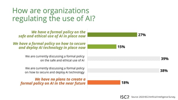 - Of the cybersecurity professionals we surveyed, only a quarter (27%) said their organizations had a formal policy in place on the safe and ethical use of AI